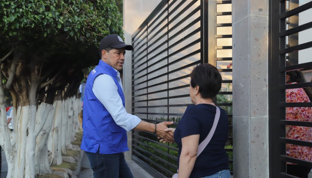 El presidente municipal Leo Montañez, recorrió calles del fraccionamiento Colinas del Río para escuchar las inquietudes, necesidades y áreas de oportunidad, con el compromiso de dar solución en las áreas de competencia municipal.