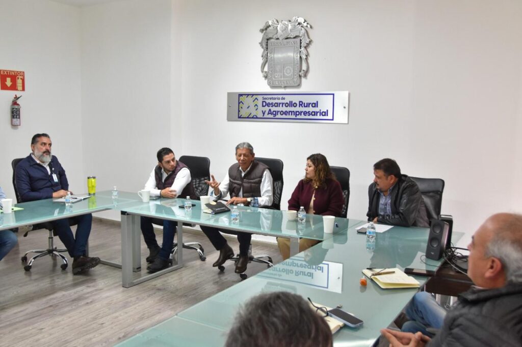 En seguimiento a los acuerdos de la reunión que encabezó la gobernadora Tere Jiménez el pasado 15 de noviembre con productores locales, el titular de la Secretaría de Desarrollo Rural y Agroempresarial del Estado (Sedrae), Isidoro Armendáriz, se reunió con el delegado en Aguascalientes de la Secretaría de Agricultura y Desarrollo Rural (Sader), Kristian Vera Guerrero; la delegada de la Comisión Nacional del Agua (Conagua), Rocío Reyes Gaytán, y el responsable de Zona Comercial Aguascalientes de la Comisión Federal de Electricidad (CFE), Oscar Daniel Garibay Soria, con la finalidad de brindar todas las facilidades para que las y los productores del campo de Aguascalientes mantengan en regla sus concesiones de agua para uso agrícola y tengan acceso a una cuota energética especial para el sector.