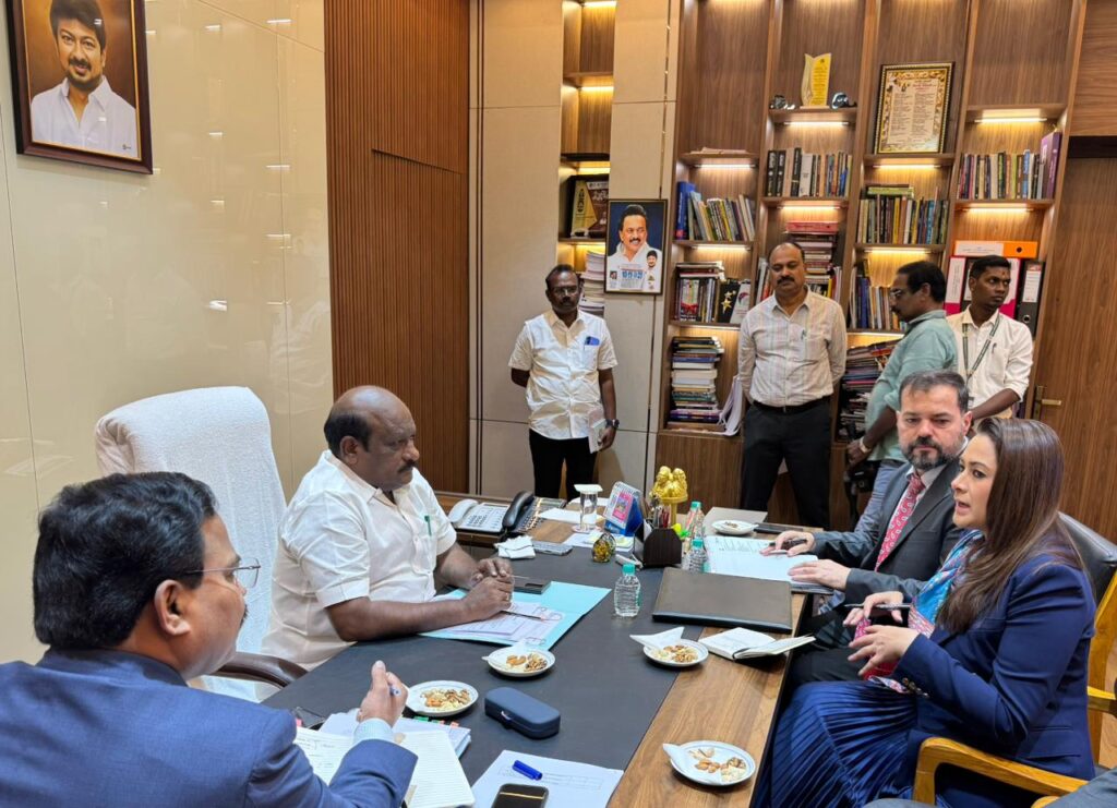 También se reunió con el Dr. TRB Rajaa, ministro de Industrias, Promoción de Inversiones y Comercio del estado de Tamil Nadu, para intercambiar experiencias sobre políticas industriales y explorar alianzas estratégicas que fortalezcan la cooperación entre México e India.