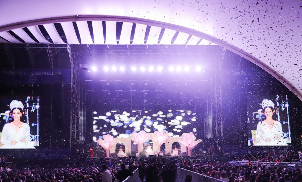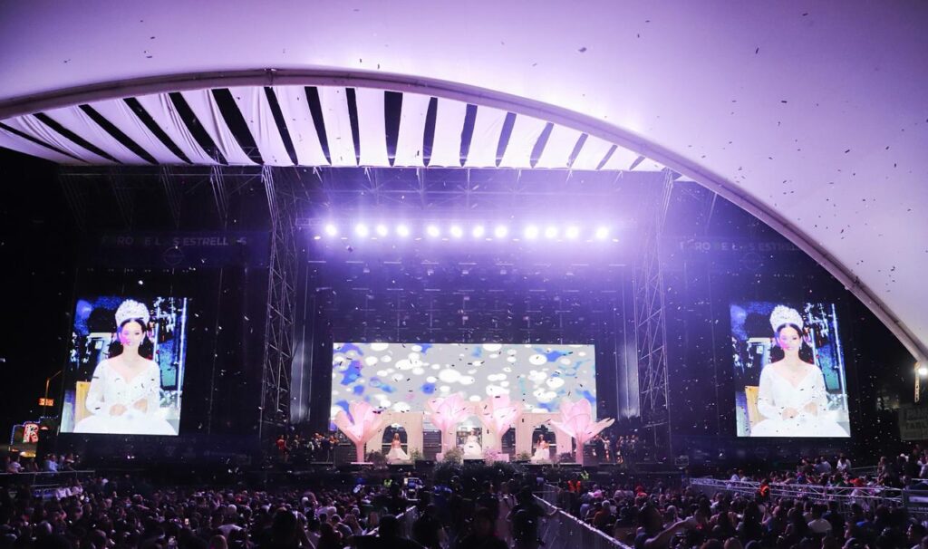 Desde el imponente Foro de las Estrellas y ante miles de asistentes, Alexa I, reina; Andy Díaz, primera princesa, y Mina Jiménez, segunda princesa, cautivaron en su primera pasarela oficial, luciendo espectaculares vestidos. Cada paso reflejó la esencia, la belleza y el carisma que las distinguen.