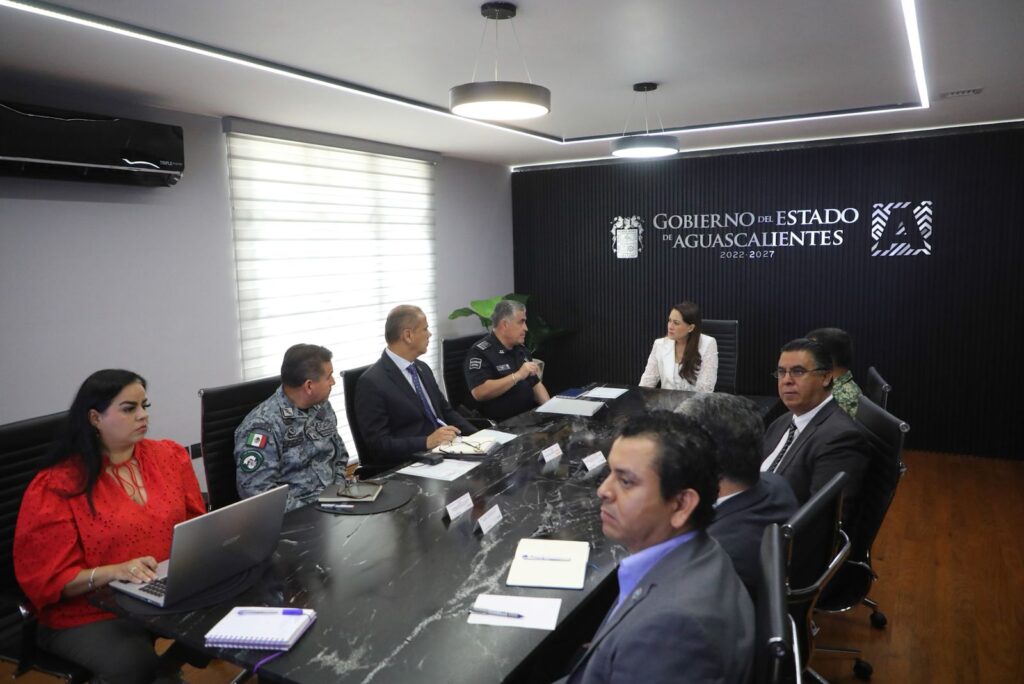 Con el objetivo de supervisar y dar seguimiento a las acciones del Plan de Seguridad y Justicia “Blindaje Aguascalientes”, la gobernadora Tere Jiménez sostuvo una reunión de trabajo con los titulares de las corporaciones de seguridad estatal y federal.