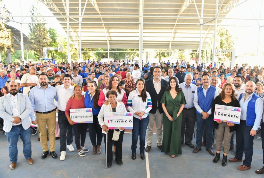 • Más de 150 familias de ese municipio recibieron material para la construcción de cuartos adicionales, calentadores solares y tinacos, entre otras cosas