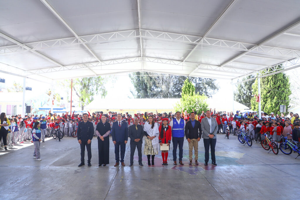 Como parte de su visita, Tere Jiménez encabezó la ceremonia de Honores a la Bandera y realizó la entrega simbólica de las computadoras, también otorgó reconocimientos a alumnas y alumnos con los mejores promedios, incentivando el esfuerzo, la constancia y la excelencia académica de las y los estudiantes.