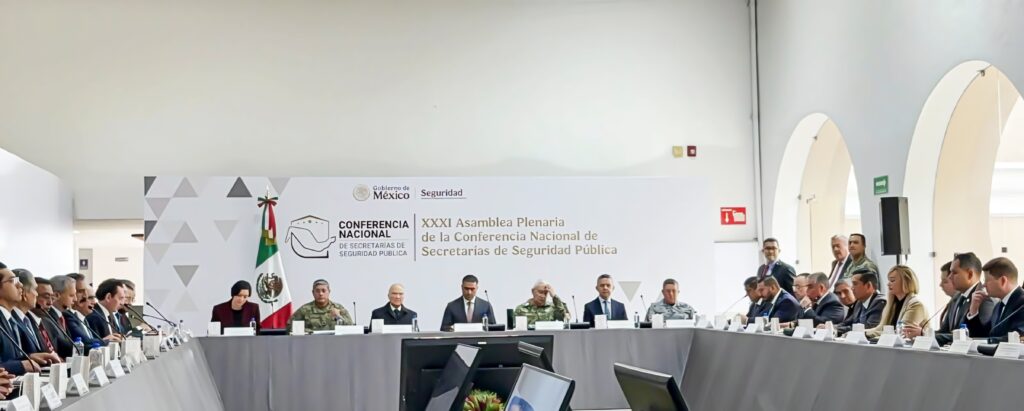 Durante la asamblea presidida por Omar García Harfuch, secretario de Seguridad y Protección Ciudadana del Gobierno de México, se estableció impulsar la coordinación entre las corporaciones federales y estatales para definir e implementar políticas, estrategias y acciones conjuntas que fortalezcan la seguridad pública y garanticen los derechos de las y los ciudadanos, en todo el país.
