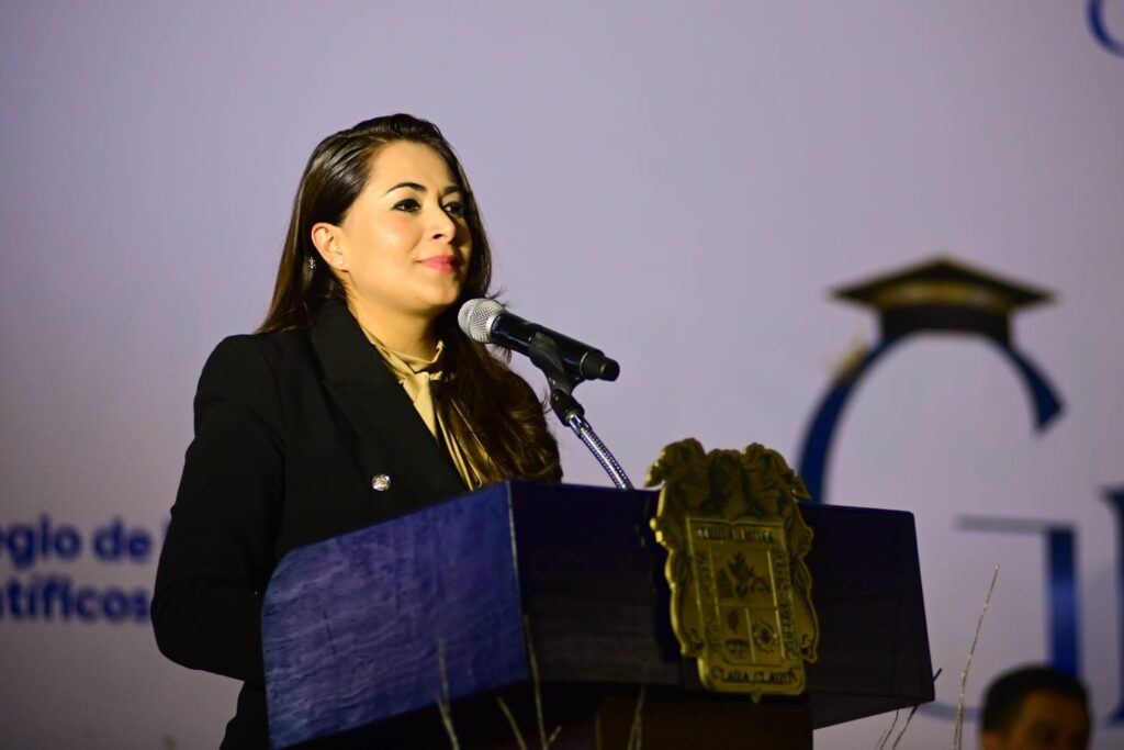 A nombre de las y los egresados, Lilian Amairany García Vital, alumna del plantel Ferrocarriles, dijo que hoy es el comienzo de una nueva etapa de retos para seguir creciendo; agradeció a sus maestros y padres de familia por el respaldo y apoyo que les dieron para concluir con éxito su preparatoria; “la mejor manera de lograr un gran futuro es luchando y preparándonos”, dijo.