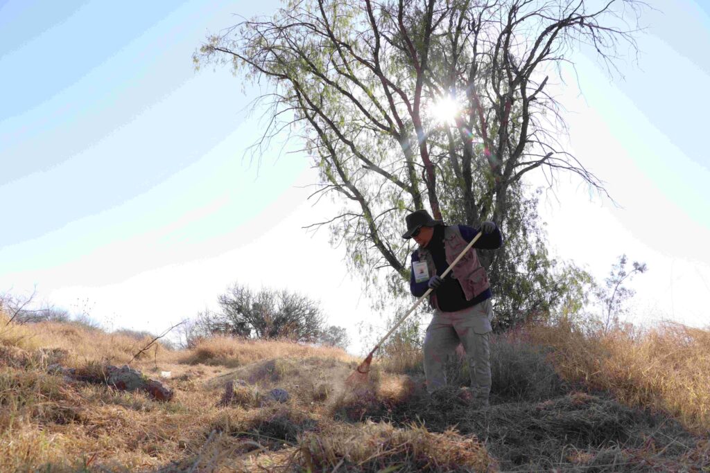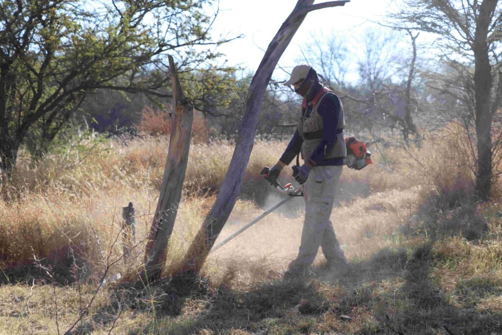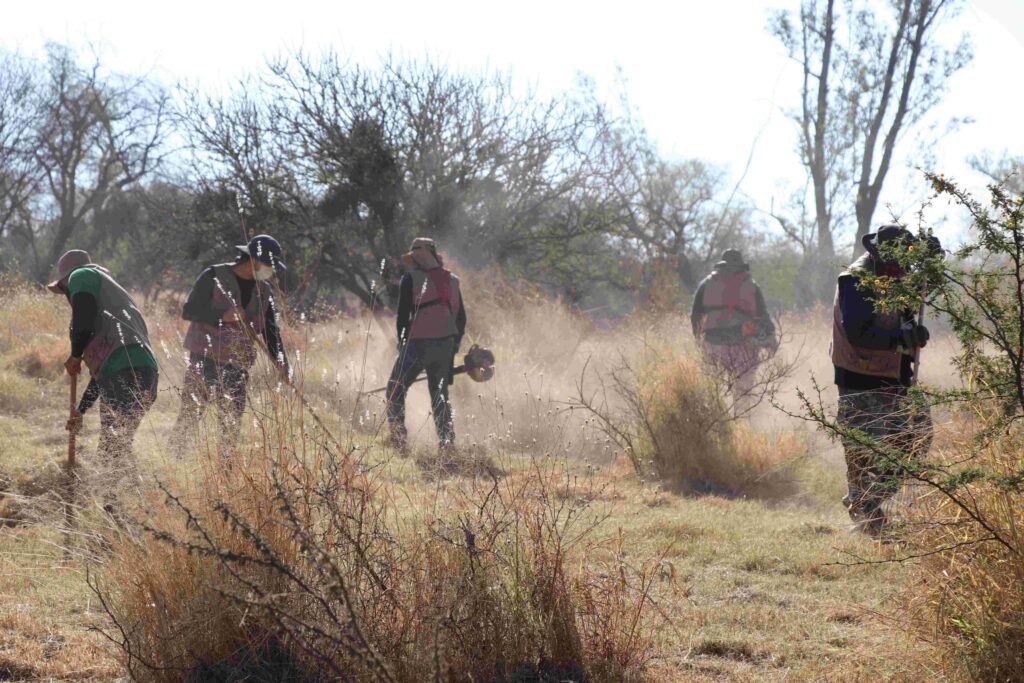 Durante esta jornada, se desmalezaron un total de 700 m², lo que contribuye significativamente a la reducción del riesgo de incendios en esta zona mezquitera. Además, se logró recolectar aproximadamente una tonelada de residuos, lo que no solo mejora la seguridad del área, sino que también promueve un entorno más saludable para la flora y fauna local.