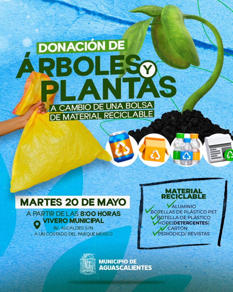 El Municipio de Aguascalientes, a través de la Secretaría de Servicios Públicos, informa a la ciudadanía que a partir de este martes 20 de mayo dará inicio la tradicional donación anual de plantas y árboles en el Vivero Municipal, una actividad muy esperada que tiene como objetivo fomentar espacios más verdes y saludables en los hogares de nuestra ciudad.