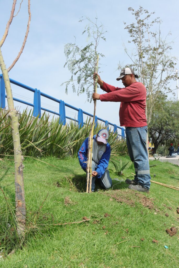 Durante esta jornada se plantaron más de mil ejemplares de diversas especies, como pirules, truenos, ceibas, bugambilias y pirul criollo, todos seleccionados por su resistencia y adaptabilidad al clima local. Las labores de reforestación se llevaron a cabo en parques y jardines emblemáticos de la ciudad, entre ellos el Parque Santa Anita, Parque La Pona, Jardín del Sol, Jardín de San Marcos y el Tercer Anillo de Circunvalación, en el tramo comprendido entre Gerónimo de la Cueva y Tres Guerras, donde además se realizó la reposición de árboles en todo el trayecto.