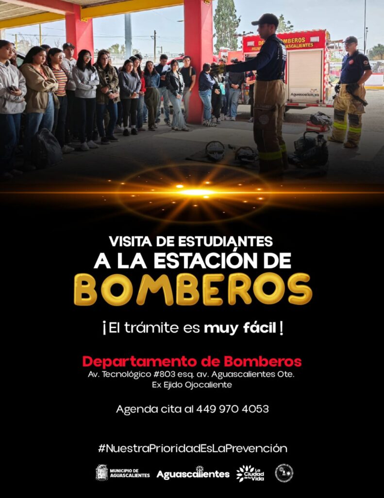 Para mayores informes, los planteles interesados en participar en estas visitas guiadas, deberán acudir a la Estación principal de Bomberos ubicada en Av. Aguascalientes Oriente No. 308, Ex Ejido Ojocaliente, en un horario de 8:00 a 16:00 horas para agendar su visita o también pueden comunicarse al teléfono 449 970 40 53.