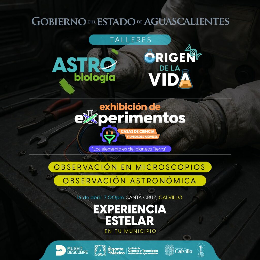 A través de este proyecto que impulsa la gobernadora de Aguascalientes, Tere Jiménez, las y los asistentes podrán participar en la observación del espacio a través de telescopios, talleres de astrobiología y el origen de la vida, cine, charlas científicas impartidas por expertos en la materia y exhibición de experimentos.