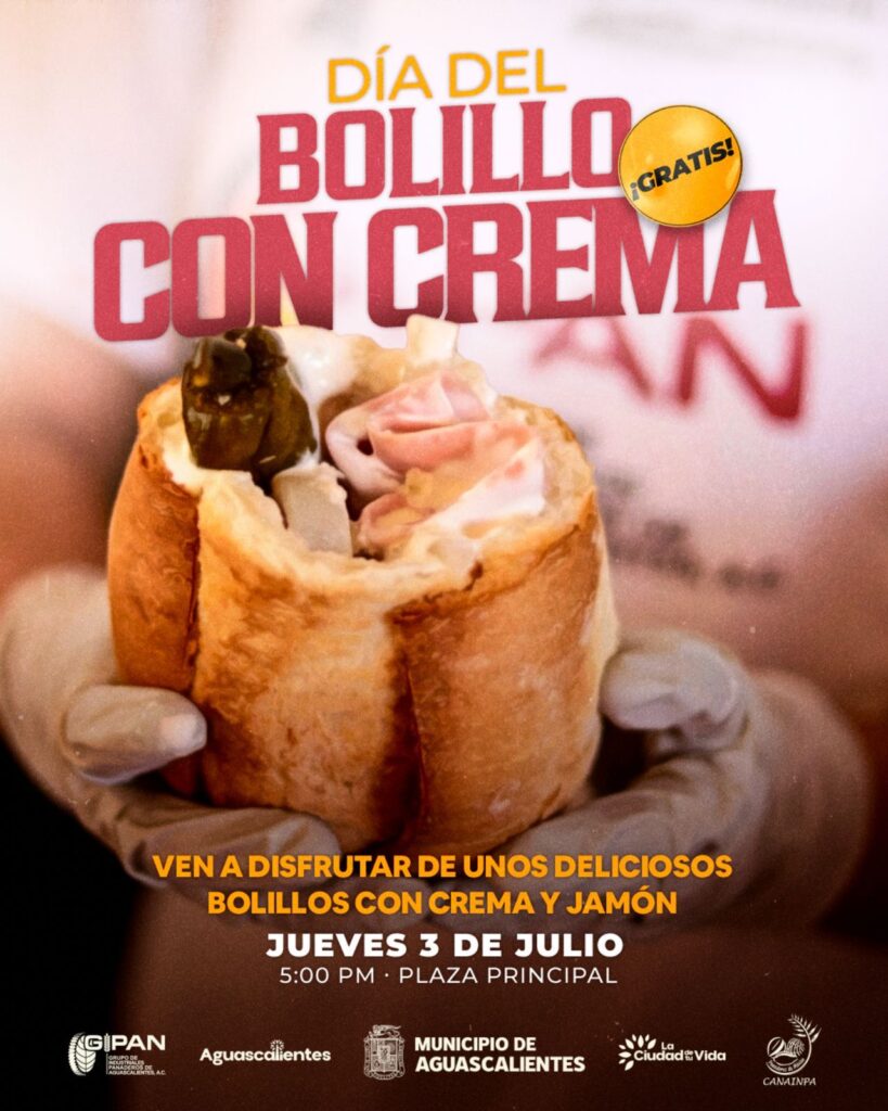 El Municipio de Aguascalientes y el Grupo de Industriales Panaderos invitan a la ciudadanía a celebrar el Día del Bolillo con Crema 2025, el próximo jueves 3 de julio, a partir de las 17:00 horas en la Plaza de la Patria, una festividad que rinde homenaje al tradicional “Bolillo Hidrocálido”, uno de los platillos más tradicionales de Aguascalientes.
