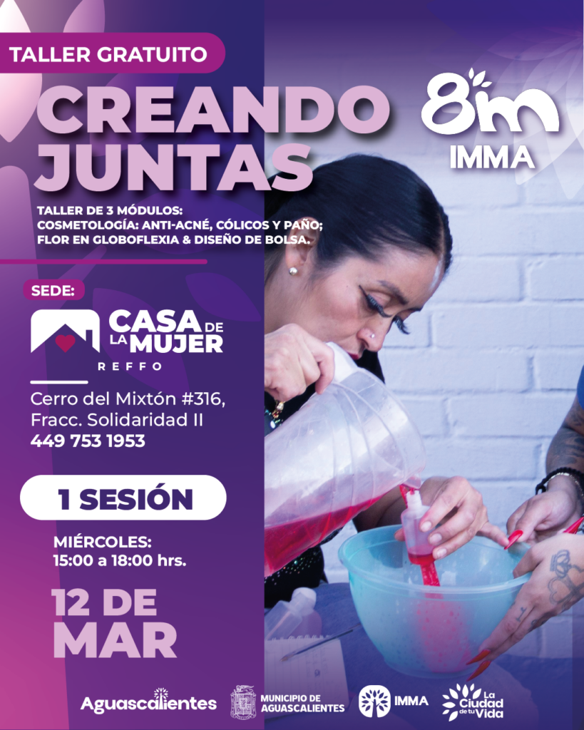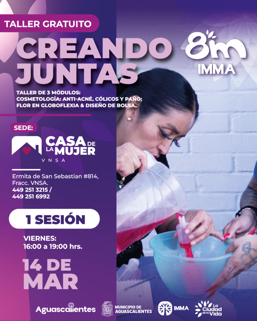 El Municipio de Aguascalientes, a través del Instituto Municipal de la Mujer (IMMA), invita a la ciudadanía a participar en los talleres gratuitos «Creando Juntas», una iniciativa que busca fortalecer la sororidad, el empoderamiento y la expresión creativa de las mujeres en un ambiente seguro.