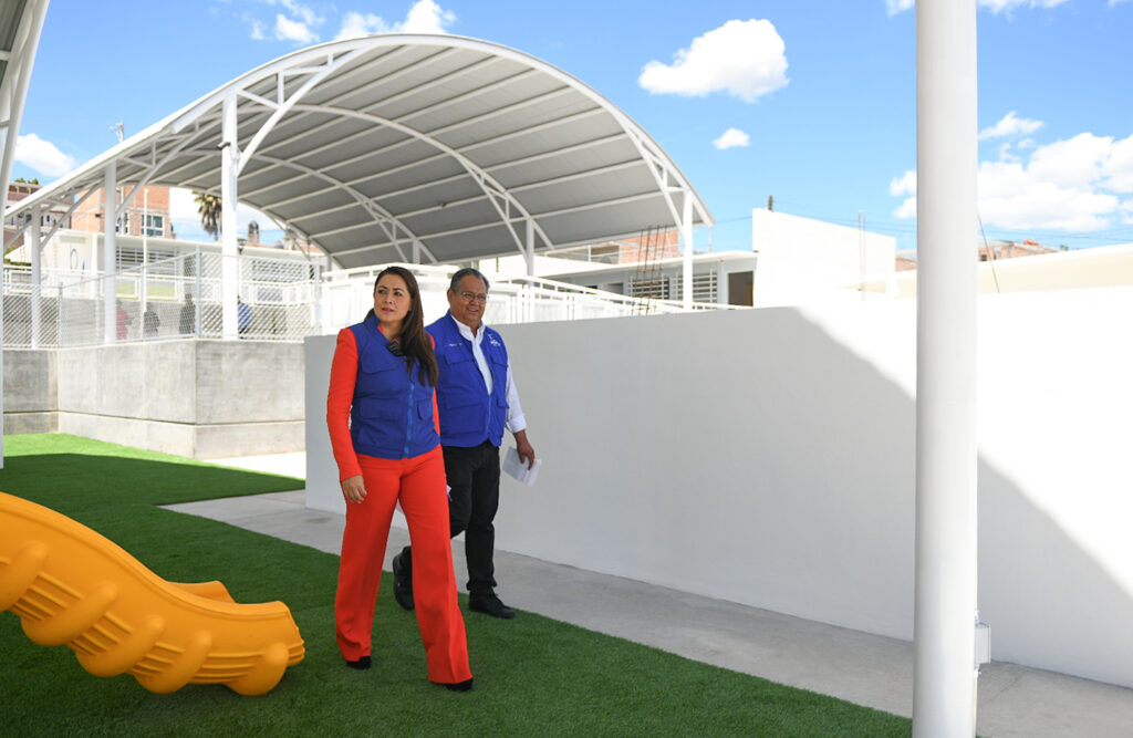 “Estamos trabajando todos los días, hemos construido muchas escuelas porque creemos firmemente en el poder transformador de la educación. Con educación, la vida de las personas cambia. Que sepan las niñas y niños de Aguascalientes que tienen a una gobernadora que los quiere y que quiere que estudien, porque todos los sueños se cumplen con esfuerzo. Estas aulas son espacios donde se construyen sueños”, expresó Tere Jiménez durante su recorrido.