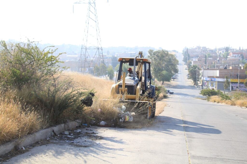 Este miércoles 20 de noviembre, el Municipio de Aguascalientes realizó un importante mega operativo de limpieza y mantenimiento urbano sobre la avenida Amalia Gómez Zepeda, en el tramo comprendido desde avenida Del Rey hasta calle De La Alianza. Esta acción tuvo como objetivo mejorar las condiciones de movilidad, limpieza y seguridad para las familias que habitan en los fraccionamientos Periodistas y Mujeres Ilustres, quienes de manera directa se verán beneficiadas con un entorno más ordenado y libre de riesgos.