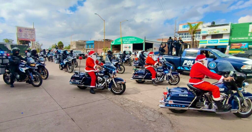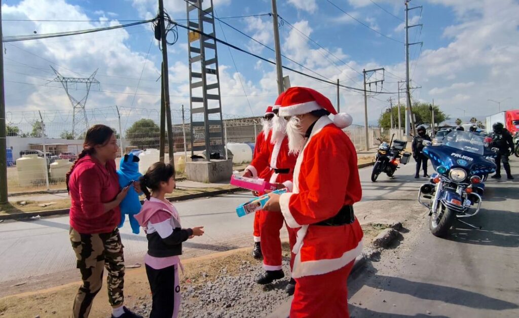 Con el fin de llevar alegría y felicidad a las niñas y los niños de Aguascalientes, integrantes de la Secretaría de Seguridad Pública del Estado (SSPE) recorrieron calles y colonias de la ciudad capital para entregarles juguetes y hacerlos vivir un momento especial.