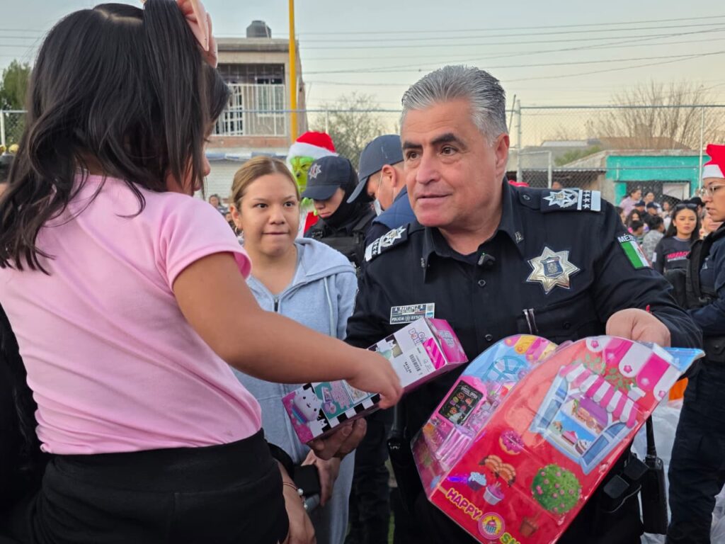 Encabezados por el secretario de Seguridad Pública, Antonio Martínez Romo, las y los oficiales entregaron más de 2 mil 500 juguetes, reunidos gracias a la generosidad del personal operativo y administrativo de la corporación. Cada obsequio se convirtió en un momento especial, lleno de emoción, ilusión y miradas que reflejaron la magia de la Navidad.