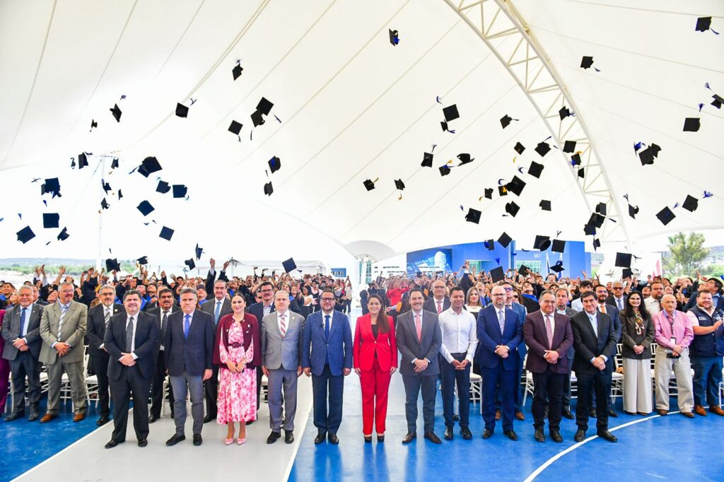 La gobernadora Tere Jiménez presidió la ceremonia de graduación de 136 estudiantes de Técnico Superior Universitario e Ingeniería de la Universidad Tecnológica Metropolitana de Aguascalientes (UTMA), reconociendo su esfuerzo y dedicación en su formación académica.