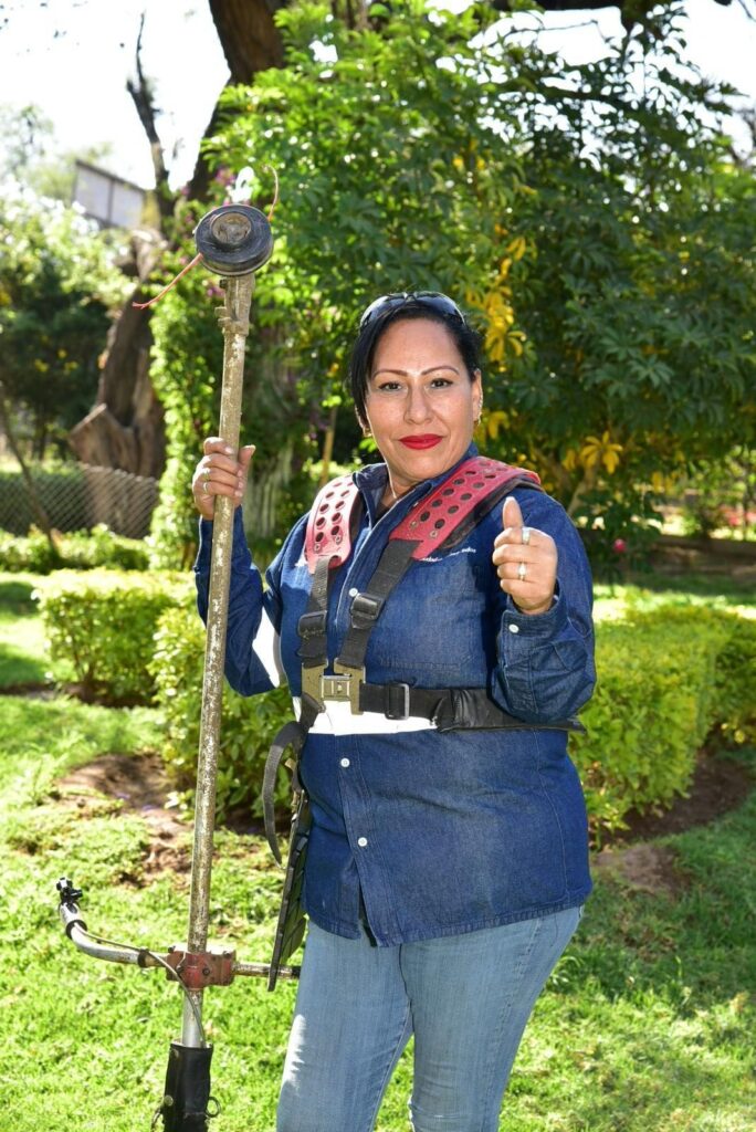 En la Dirección de Parques y Jardines, hay mujeres que cuidan áreas verdes, podan árboles, riegan jardines y siembran nuevas plantas, embelleciendo los espacios recreativos y mejorando la calidad del aire en nuestra ciudad.