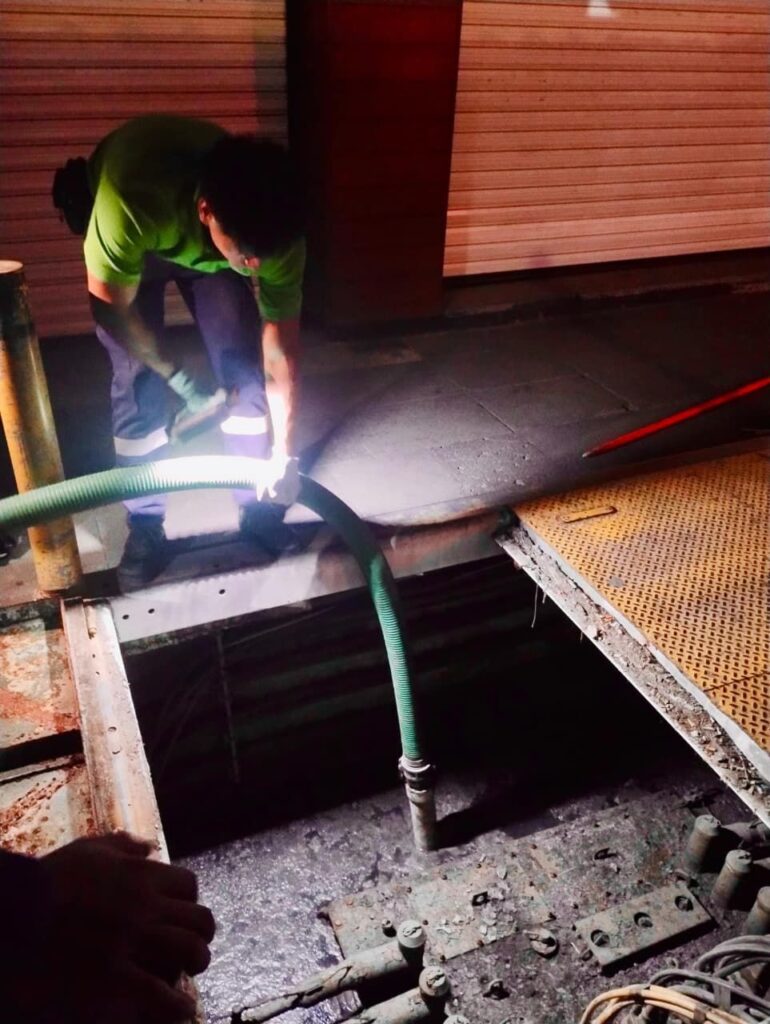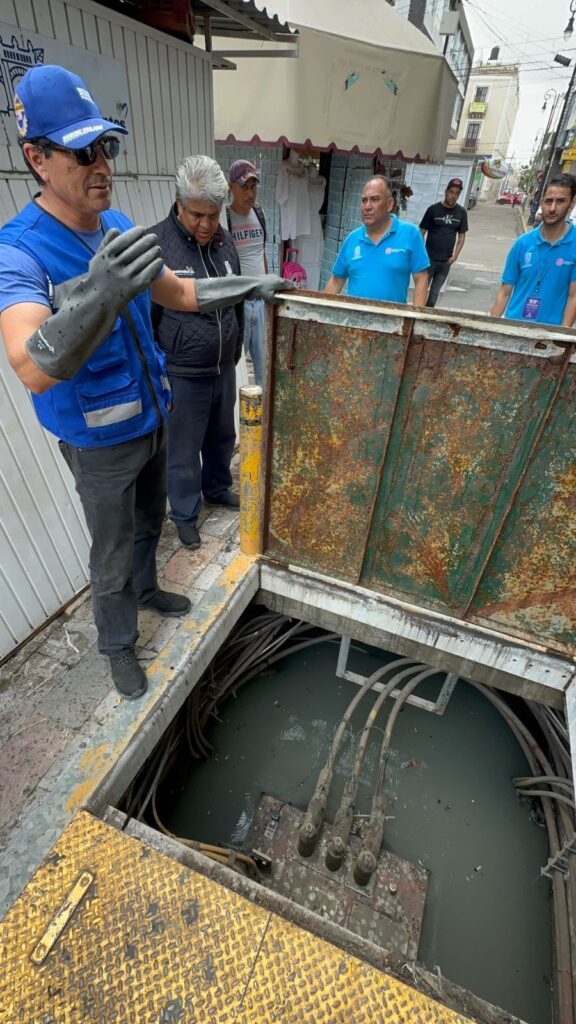 Como parte de las labores y con las debidas precauciones, se deselectrificó la zona en horario nocturno, para proceder a los trabajos de desazolve, retirar los desechos sólidos para liberar el flujo de agua acumulada que expedía malos olores y prevenir riesgos físicos y de salud de transeuntes y locatarios.