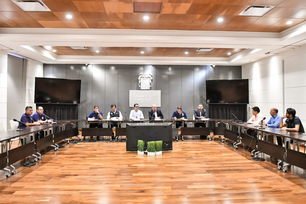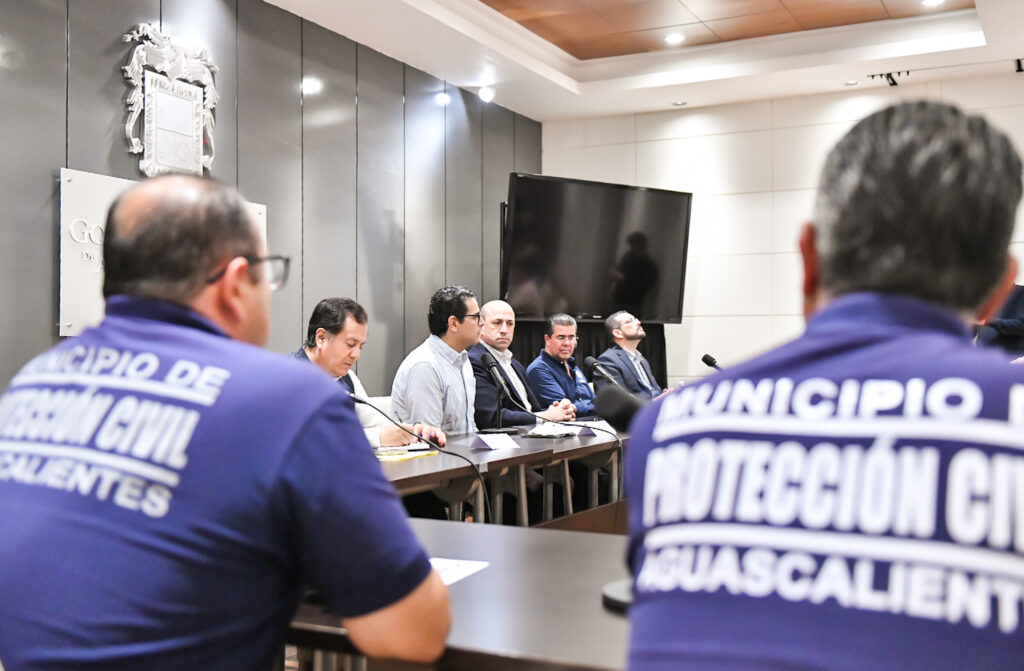 En la reunión también estuvieron presentes Jesús Eduardo Muñoz de León, coordinador estatal de Protección Civil; Luis Enrique García López, secretario del H. Ayuntamiento y director general de Gobierno del Municipio de Aguascalientes; José Gabino Vázquez Vega, coordinador de Protección Civil del Municipio de Aguascalientes, y Oscar Tristán Rodríguez Godoy, secretario de Desarrollo Urbano del municipio capital.
