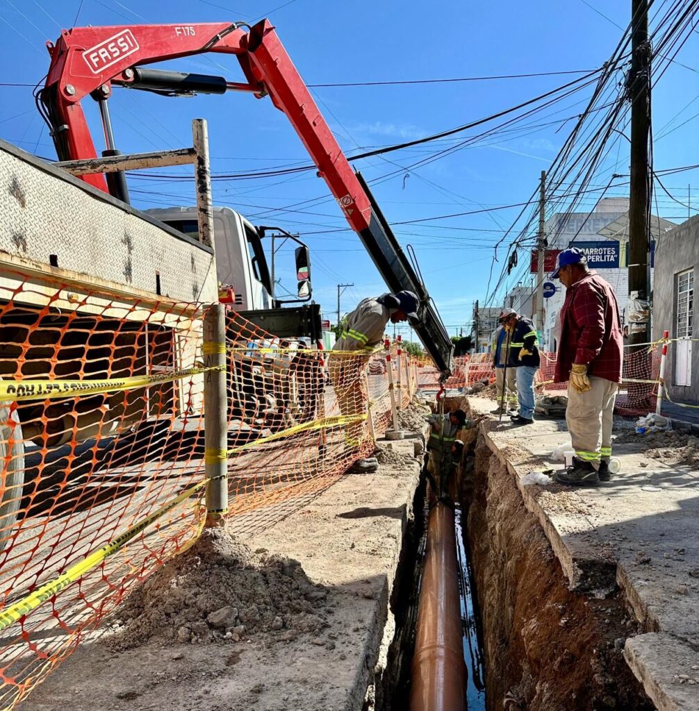 El Modelo Integral de Aguas de Aguascalientes (MIAA) realiza trabajos de rehabilitación de la red sanitaria en la calle Nuevo León esquina con Casa Blanca, en el fraccionamiento México, con el propósito de mejorar el sistema de alcantarillado y prevenir afectaciones a los vecinos de la zona.