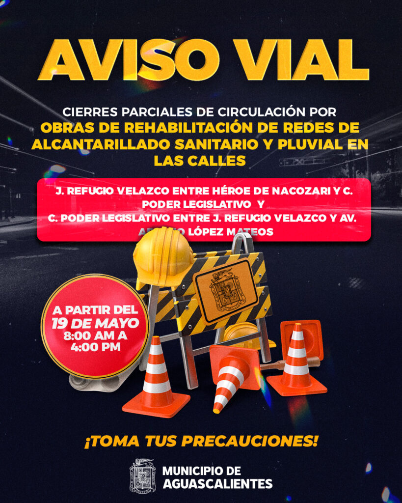 La Secretaría de Obras Públicas Municipales (Sopma) y el Modelo Integral de Aguas de Aguascalientes (MIAA) informan que a partir de hoy dan inicio los trabajos de rehabilitación de las redes de alcantarillado sanitario y pluvial, así como la construcción de un caimán en las calles J. Refugio Velasco, entre Héroe de Nacozari y Poder Legislativo, así como en las vialidades Poder Legislativo, entre J. Refugio y Avenida Adolfo López Mateos, en el Barrio de la Purísima.