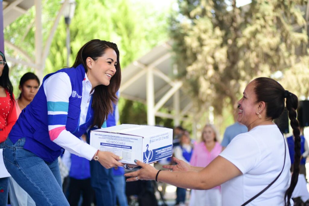 Posteriormente, en la Unidad Deportiva de Rincón de Romos, la gobernadora entregó más de 2 mil 700 apoyos alimentarios a personas en situación de vulnerabilidad, a través del Programa de Atención Alimentaria del DIF Estatal.