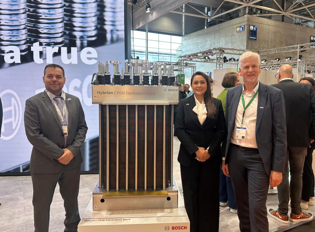 Ahí mismo, en el estand de Bosch, la gobernadora se reunió con directivos de esta empresa alemana, líder a nivel mundial y con presencia en Aguascalientes, quienes le presentaron nuevos proyectos tecnológicos que ya desarrollan en algunas de sus plantas para impulsar las energías renovables con el uso de hidrógeno verde.