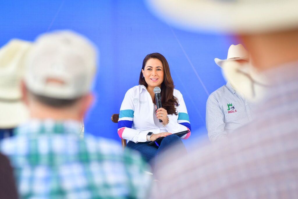 Durante el evento que se realizó en el Rancho AGL, Tere Jiménez destacó que mejorar la calidad genética del ganado es una estrategia clave para incrementar la productividad, los ingresos de los productores y garantizar alimentos de mayor calidad para las familias del estado.