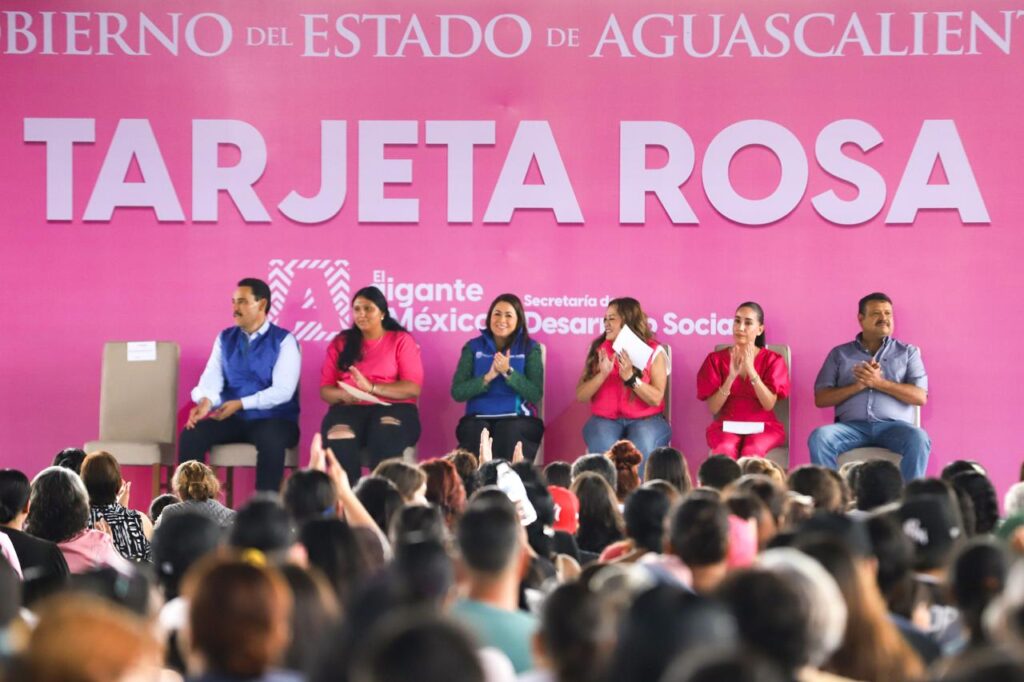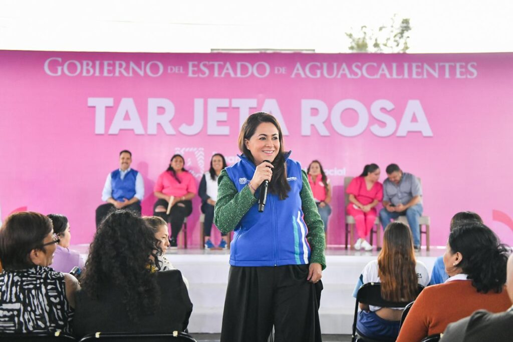 La gobernadora de Aguascalientes, Tere Jiménez, entregó 200 Tarjetas Rosas a mujeres de Pabellón de Arteaga, con la que tendrán acceso a un apoyo económico bimestral en reconocimiento a su trabajo a favor de sus comunidades. Este año, la meta es beneficiar a 3 mil mujeres que son agentes de cambio.