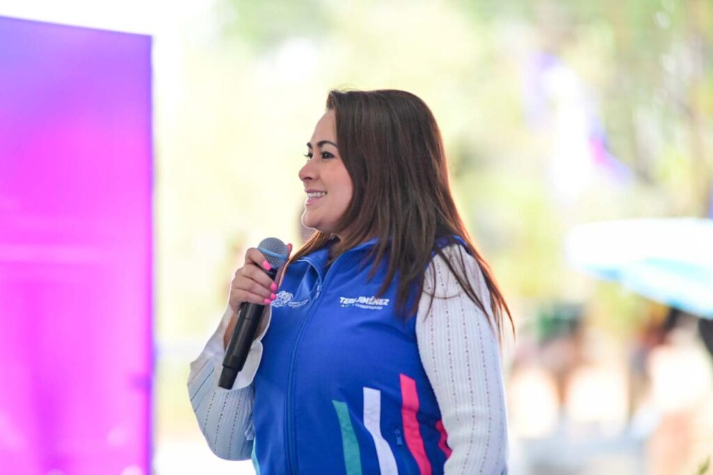 “Les pusimos sus canchas deportivas y juegos para que tengan espacios dignos y de calidad, como se merecen. Simplemente aquí en la capital hemos rehabilitado y entregado 16 parques”, expresó la gobernadora durante el evento en el Ejido Peñuelas.
