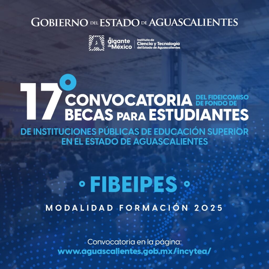 El Gobierno del Estado invita a jóvenes universitarios a participar en la 17.ª Convocatoria de Becas de Formación 2025 del Fideicomiso de Fondo de Becas para Estudiantes de Instituciones Públicas de Educación Superior (FIBEIPES); las y los postulantes deberán registrarse en línea del 10 al 23 de septiembre de 2025 en www.fibeipes.com.